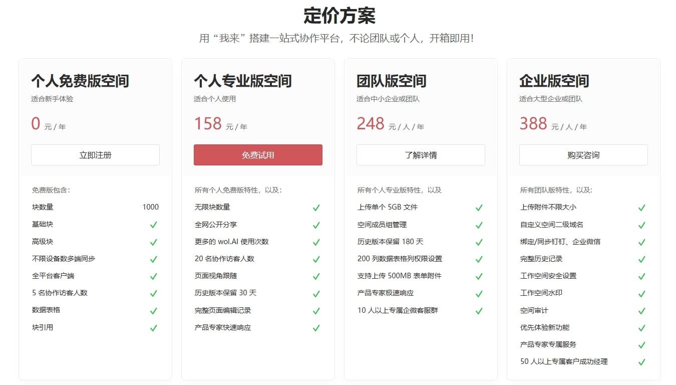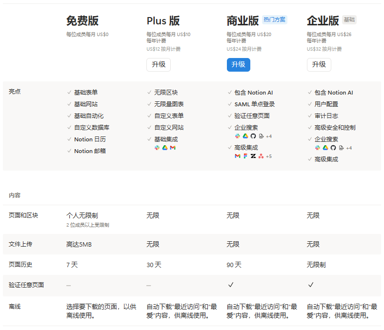 看完这么多云笔记工具,再看看Notion的免费版提供的待遇:
