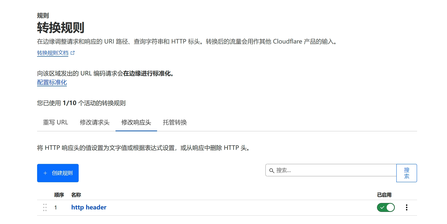 在Cloudflare控制面板,定位:规则→转换规则→修改响应头,然后按照实际需求添加即可。