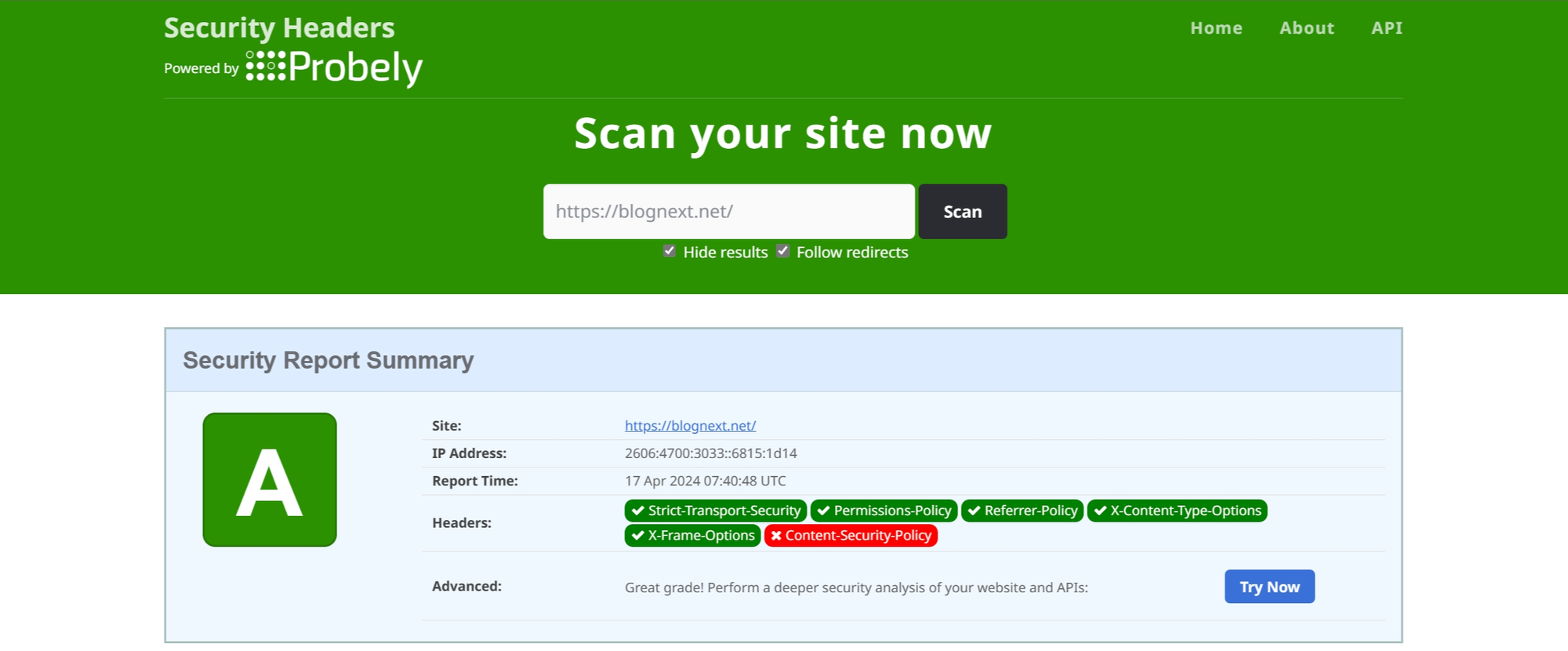 还是在这个网站进行测试,如果你不知道怎么选择响应头,可以去看一下其他网站是怎么配置的,这里你可以测试所有能打开的网站。
