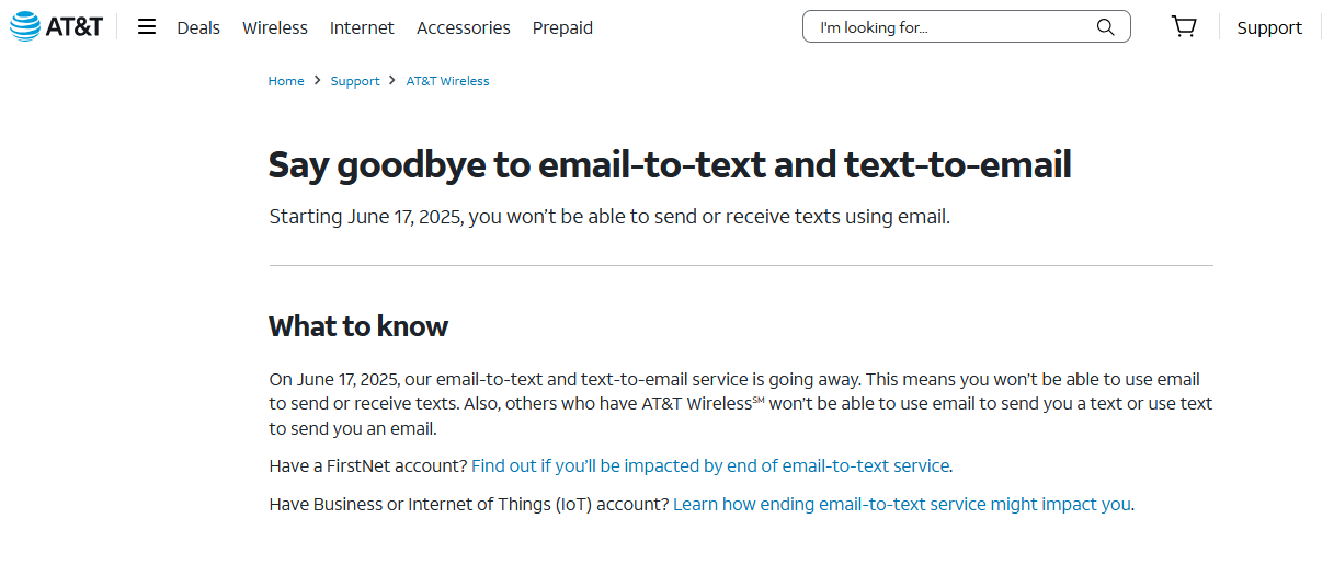 下面这篇文章也提到了,邮件服务商SendGrid于2024年就停止了all email to SMS gateway traffic,也提到AT&T官方也于2025年停止了相关服务。