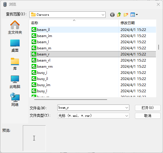 3.修改配置文件,找到beam..左下角有样式预览,随便找一个你喜欢的,当然,“beam_r”我觉得看起来效果不错。然后点击“打开”